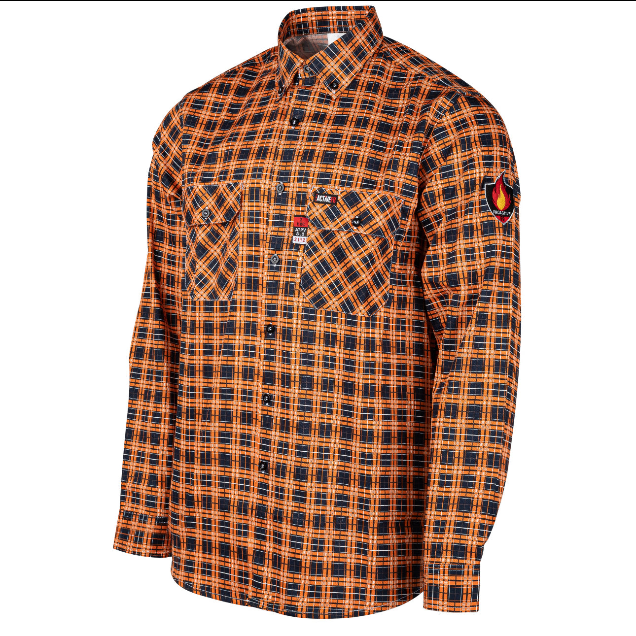 •Color-matched FR buttons and button down collar for a professional look.